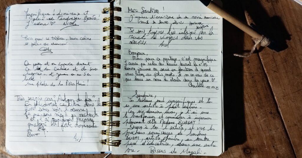 Extrait du Livre d’Or de ma première exposition à La Pistouflerie en juin 2025