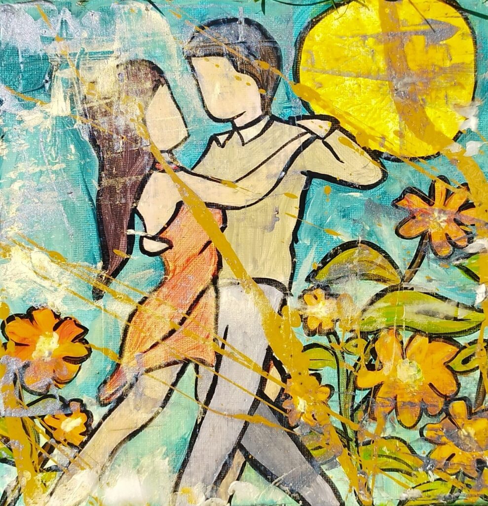 Ma peinture cherche à retranscrire les liens, la relation, l’émotion. Nous portons tous plusieurs visages, qui changent selon le moment, le contexte, ou les personnes avec qui nous interagissons.